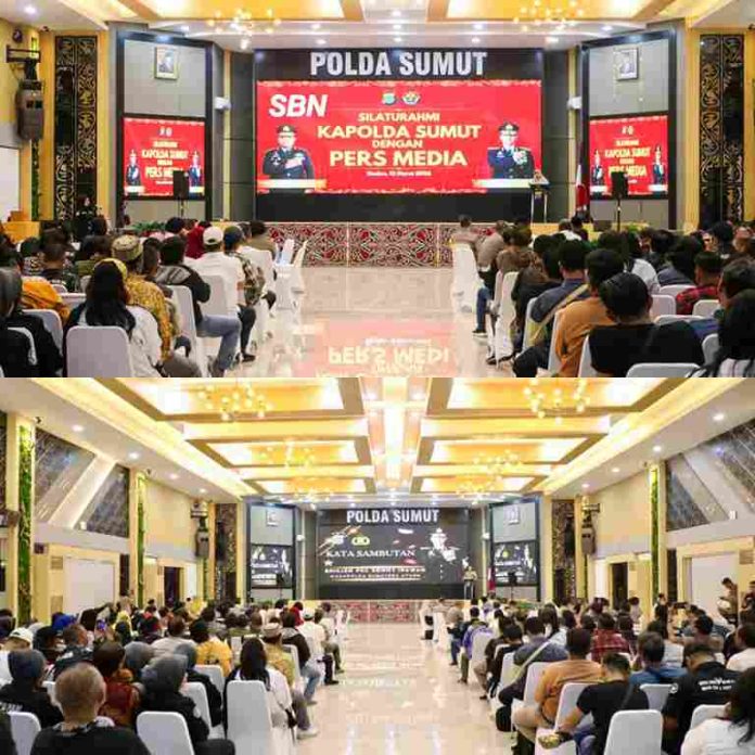 Medan | suaraburuhnasional.com – Polda Sumatera Utara menggelar kegiatan Silaturahmi Polda Sumut Bersama Media dalam rangka menyambut Hari Raya Idul Fitri 1447 Hijriah di Aula Tribrata Polda Sumut, Kamis (12/3/2026).