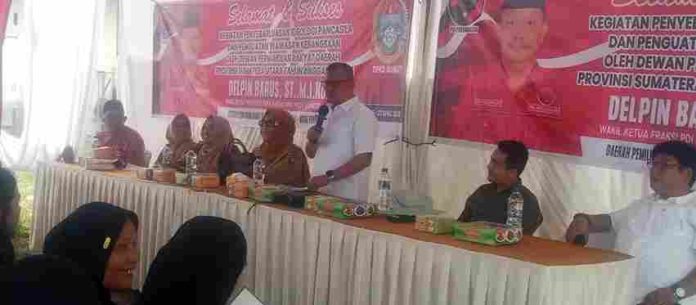 Tebing Tinggi | suaraburuhnasional.com – Delpin Barus, S.T., M.I.Kom. Wakil Ketua Fraksi PDI Perjuangan DPRD Provinsi Sumatera Utara dari Daerah Pemilihan Tebing Tinggi-Serdang Bedagai menggelar Kegiatan Penyebarluasan Ideologi Pancasila dan Wawasan Kebangsaan di Jalan Abdul Hamid Lingkungan 4 Kecamatan Padang Hilir Tebing Tinggi, Senin (21/4/2026).