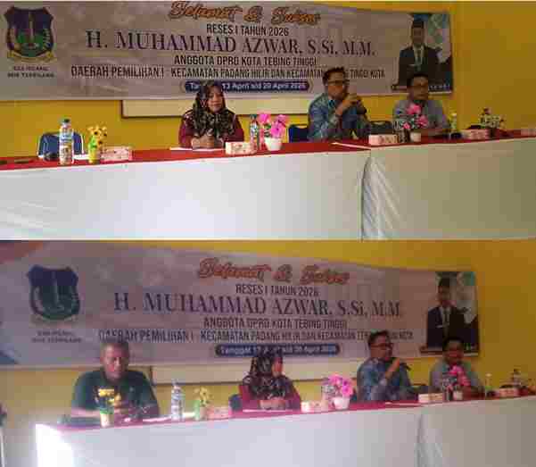 Tebing Tinggi | suaraburuhnasional.com -H. Muhammad Azwar, S.Si, MM. Anggota DPRD Kota Tebing Tinggi berasal dari Fraksi Nasdem Daerah Pemilihan (Dapil) I Kecamatan Tebing Tinggi Kota-Padang Hilir menggelar Reses I Tahun 2026 di Aula Kantor Kelurahan Tambangan Hulu Kecamatan Padang Hilir, Jum’at (17/4/2026).