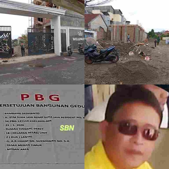 Medan | suaraburuhnasional.com – Berlogo Wallington, perumahan mewah hanya memakai sepotong kertas sebagai izin Persetujuan Bangunan Gedung (PBG) di lokasi, bangunan mewah berlogo Wallington ini izin bangunannya diduga menyimpang tidak sesuai fakta di lapangan yang akan dibangun di Jalan AR Hakim Gang Sukmawati.