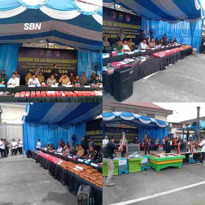 Medan | suaraburuhnasional.com -Polrestabes Medan memusnahkan 52 kilogram sabu dan 50 kilogram ganja kering hasil pengungkapan jaringan peredaran narkotika lintas daerah dari Aceh ke Medan. Dalam kasus ini, polisi juga menangkap tiga tersangka yang diduga berperan sebagai kurir.